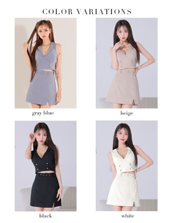 ダブルボタン 襟付き ウエストベルト パンツ セットアップ タイトミニドレス