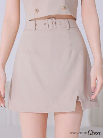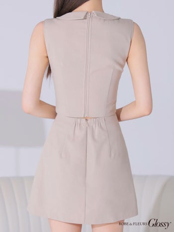 4. 【Glossy by ROBE de FLEURS/グロッシー】ダブルボタン 襟付き ウエストベルト パンツ セットアップ バストカット ノースリーブ タイトミニドレス(GL3523)
