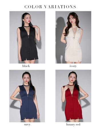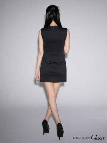 3. 【Glossy by ROBE de FLEURS/グロッシー】オープンバスト ノースリーブ デコルテシースルー ベルトデザイン セクシー タイトミニドレス (GL3556)