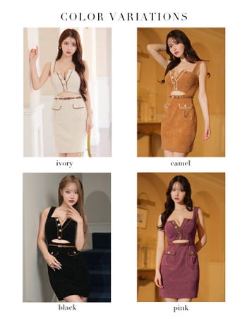 キャバドレス ブランド セクシー オープンバスト レザーパイピング ウエストカット ベルト ポケット ノースリーブ タイトミニドレス