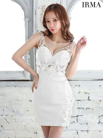 XSあり!大人セクシーな雰囲気♪ 【IRMA/イルマ】ノースリーブ フラワー刺繍 バストシースルー タイトミニドレス (41579)