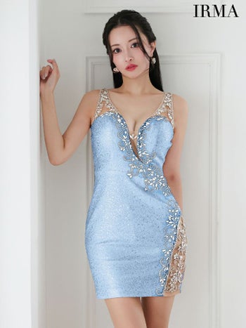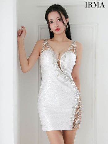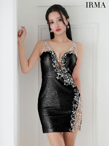 キャバドレス 高級 ミニドレスIRMA イルマ ゴージャスビジュー スパンコールラメ ノースリーブ タイトミニドレス