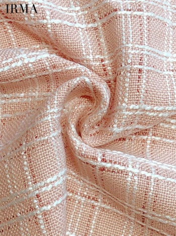 4. 【IRMA/イルマ】リボン シフォン バストカット パールボタン ノースリーブ チェック柄 サマーツイード タイトミニドレス (55064)