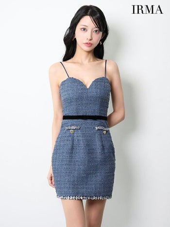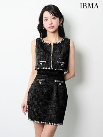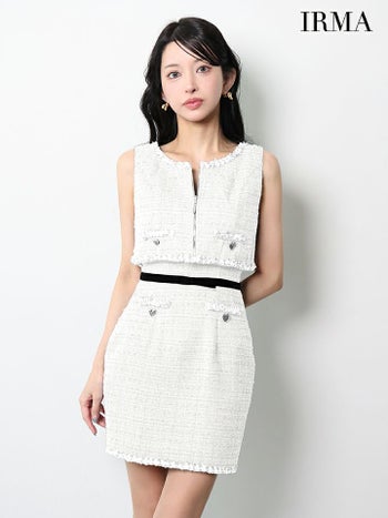 キャバドレス IRMA イルマ ジップデザイン ツイードセットアップ キャミソール リボンベルト付き ノースリーブトップス タイトミニドレス