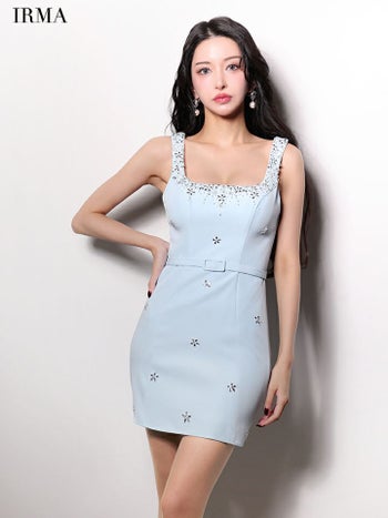 4. 予約商品【3月中旬入荷予定】【IRMA/イルマ】ノースリーブ ビジュー ウエストベルト ガーリー タイトミニドレス (61048)