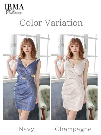 気品に満ちた女性へ導くキャバドレス♪ 【IRMA/イルマ】タックカッティング ビジュー ノースリーブ タイトミニドレス[91844]
