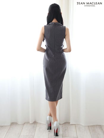 4. 【JEANMACLEAN/ジャンマクレーン】セクシー オープンバスト ジップデザイン ノースリーブ 襟デザイン ストライプ 膝丈ドレス (55059)