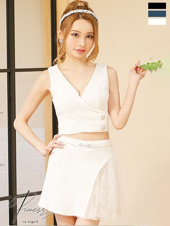 4. 【PURESS/ピュアレス】パールビジューチャームレースセットアップフレアマイクロフレアミニドレス (PS202303)