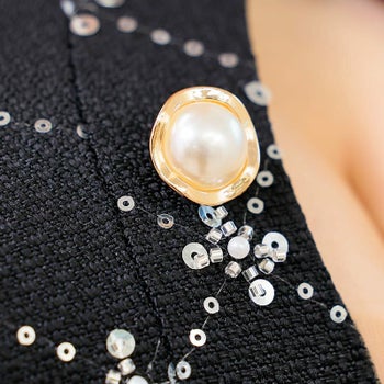オープンバスト ノースリーブ ツイード スパンコール ビジュー ボタン 台形 セットアップ フレアミニドレスのイメージ画像5