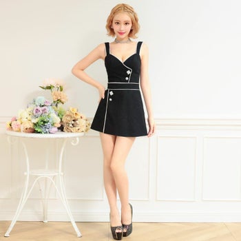 ビジューボタンパイピング ノースリーブ ラップデザイン マイクロタイトミニドレスのメイン画像1