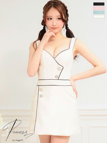 フェミニン ビジューボタンパイピング ノースリーブ ラップデザイン マイクロタイトミニドレス
