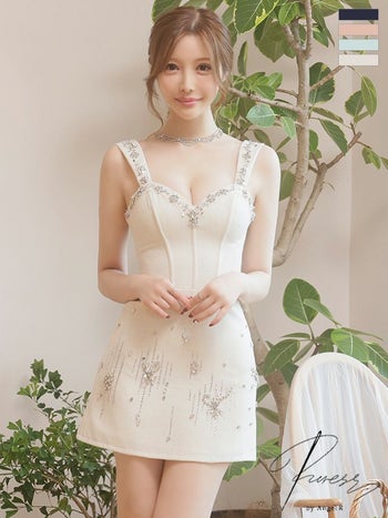 キャバドレス ブランド ガーリー ビジュー オープンバスト ノースリーブ コルセットデザイン フレアミニドレス