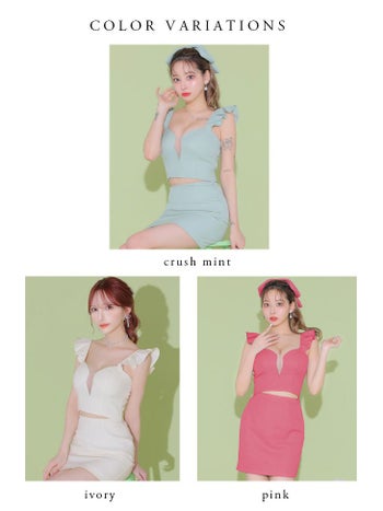 3. SALE【ANIER./アニエル】バックファブスエードリボン フリルノースリーブ セットアップ タイトミニドレス (anier4036)