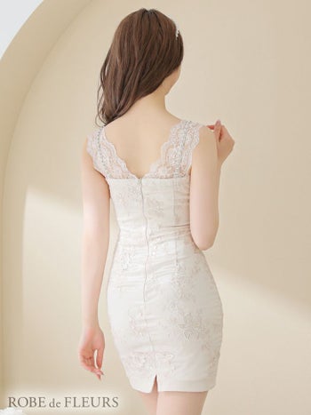 3. 【ROBEdeFLEURS/ローブドフルール】スタイルアップ サイド フラワーモチーフ ノースリーブ タイトミニドレス(FM2578)