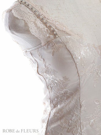 素材 スパンコール付き刺繍レース、立体フラワーモチーフ、ポンチ、サテン