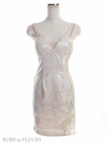 XS~Lあり!片サイドのレース切替がボディラインを細魅せ♪ 【ROBEdeFLEURS/ローブドフルール】スタイルアップ サイド フラワーモチーフ ノースリーブ タイトミニドレス(FM2578)