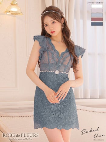 3. 【ROBEdeFLEURS/ローブドフルール】華麗 ウエストビジュー シースルーレース フリルノースリーブ タイトミニドレス(FM2632)