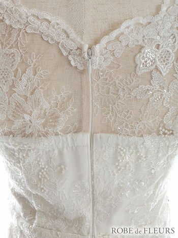 4. 【ROBEdeFLEURS/ローブドフルール】ワンカラー ウエストビジュー シースルーレース フリルノースリーブ タイトミニドレス(FM2632)