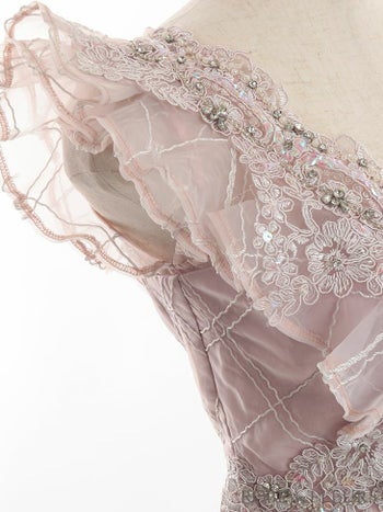 4. 【ROBEdeFLEURS/ローブドフルール】華麗 ブロックチュール フリルノースリーブ フェアリータイトミニドレス(FM2802)