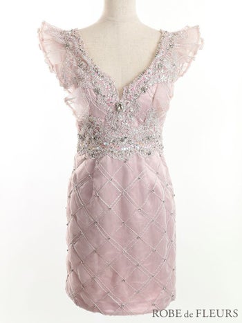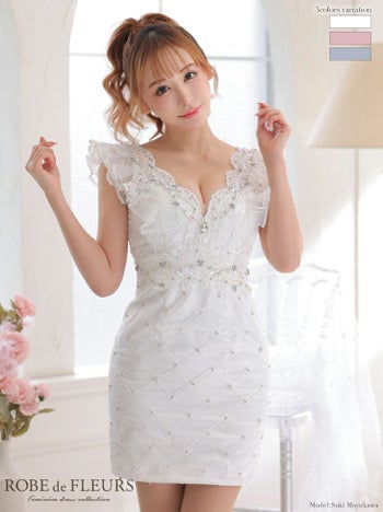 4. 【ROBEdeFLEURS/ローブドフルール】シンプル ブロックチュール フリルノースリーブ フェアリータイトミニドレス(FM2802)