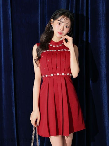 キャバドレス ブランド クリスタル キラキラ ビジュー スプリングツイード ガーリー ノースリーブ フレアミニドレス