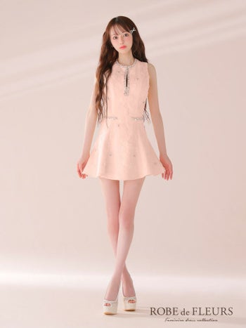 3. 予約商品【2月下旬入荷予定】【ROBEdeFLEURS/ローブドフルール】ノースリーブ ビジュー ガーリー ジップデザイン フレアミニドレス (fm3439)