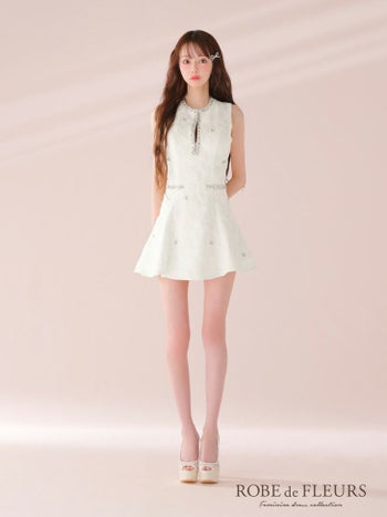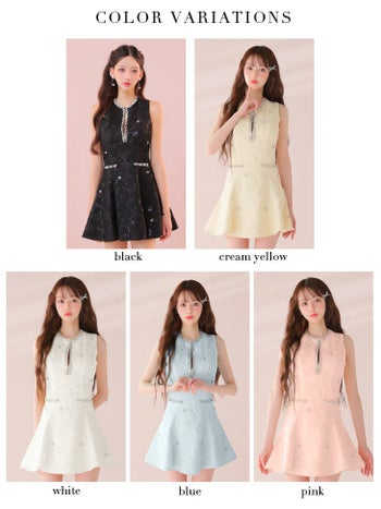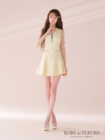 4. 予約商品【2月下旬入荷予定】【ROBEdeFLEURS/ローブドフルール】ノースリーブ ビジュー ガーリー ジップデザイン フレアミニドレス (fm3439)