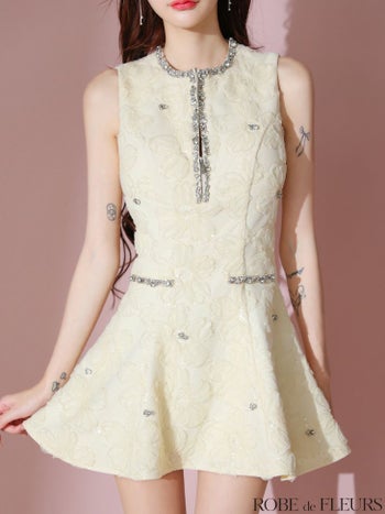 XSあり!ビジューの輝きが美しい♪ 予約商品【2月下旬入荷予定】【ROBEdeFLEURS/ローブドフルール】ノースリーブ ビジュー ガーリー ジップデザイン フレアミニドレス (fm3439)