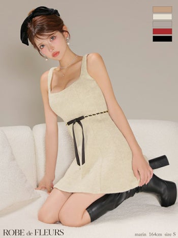 キャバドレス ROBEdeFLEURS ローブドフルール メルトン シンプル ノースリーブ ウエストリボン ラメ ガーリー フレアミニドレス