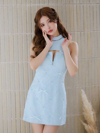 キャバドレス キルティング キルティング ジップデザイン バストカット ミニリボン ノースリーブ タイトミニドレス