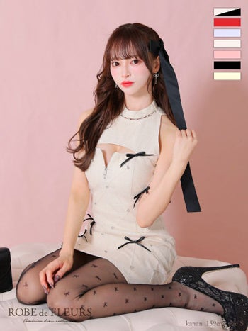 4. 【ROBEdeFLEURS/ローブドフルール】キルティング ジップデザイン バストカット ミニリボン ノースリーブ タイトミニドレス (fm3531)