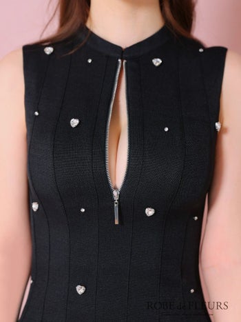 XSあり!胸をときめかせてくれる一着♪ 【ROBEdeFLEURS/ローブドフルール】オープンバスト ジップデザイン ノースリーブ ハートビジュー プリーツ ガーリー フレアミニドレス (fm3782)