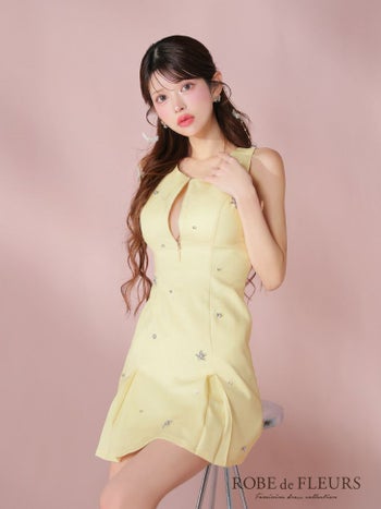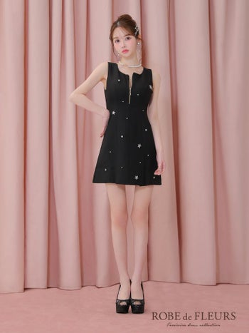 キャバドレス ROBEdeFLEURS ローブドフルール ジップデザイン ノースリーブ ビジュー ポケット ガーリー フレアミニドレス