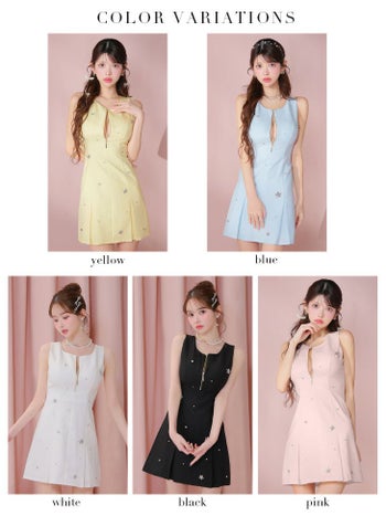 4. 【ROBEdeFLEURS/ローブドフルール】ジップデザイン ノースリーブ ビジュー ポケット ガーリー フレアミニドレス (fm3789)