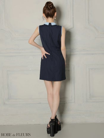 キャバドレス ROBEdeFLEURS ローブドフルール キーホールカット 襟付き ノースリーブ バイカラー シンプル ノースリーブ フレアミニドレス