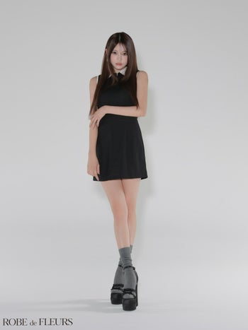 4. 【ROBEdeFLEURS/ローブドフルール】ノースリーブ バイカラー キーホールカット 襟付き シンプル ノースリーブ フレアミニドレス(fm4228)