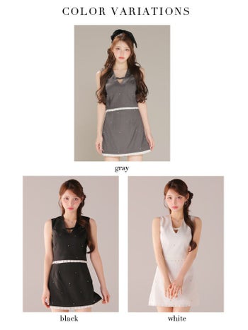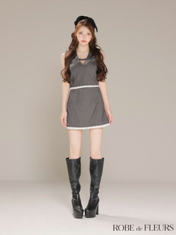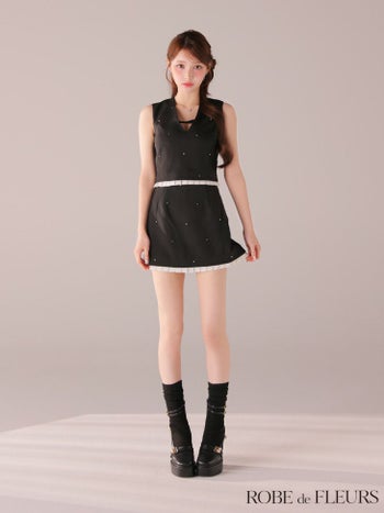 3. 【ROBEdeFLEURS/ローブドフルール】バストリボン ストーン付き セットアップ ノースリーブ ガーリー フレアミニドレス (fm4325)