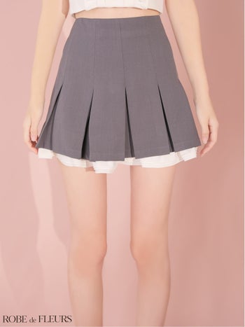 XSあり!ドキッとするチラ見せ♡ 【ROBEdeFLEURS/ローブドフルール】襟付き ノースリーブ プリーツスカート フリル セットアップ ガーリー リボン フレアミニドレス (fm4609)