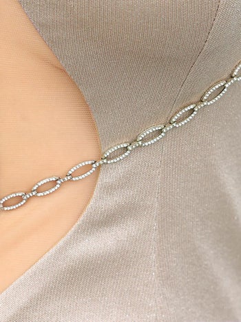 4. 【Veautt/ヴュート】オープンバスト ノースリーブ くびれ透け チェーン ラメ セクシー 膝丈ドレス (VT022501)