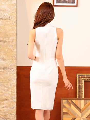 4. 【Veautt/ヴュート】ノースリーブ アシンメトリー ウエストタック セクシー バストカット チョーカーデザイン 膝丈ドレス (VT022505)