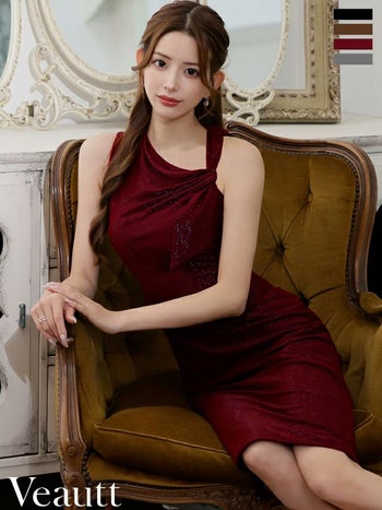 キャバドレス Veautt ヴュート アシンメトリー ノースリーブ リボンデザイン ラメ エレガント 膝丈ドレス
