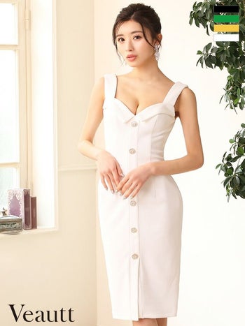 4. 【Veautt/ヴュート】セクシー オープンバスト ボタン センタースリット ノースリーブ 膝丈ドレス (VT082408)