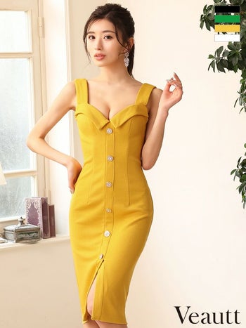 4. 【Veautt/ヴュート】ボタン センタースリット ノースリーブ セクシー オープンバスト 膝丈ドレス (VT082408)