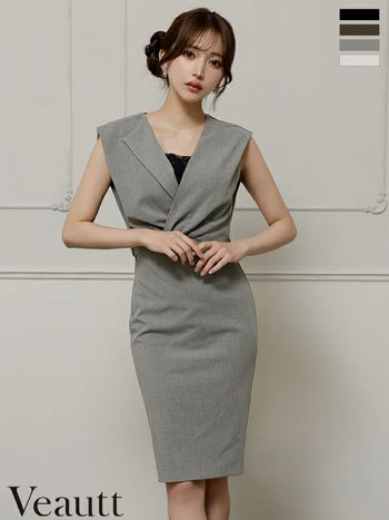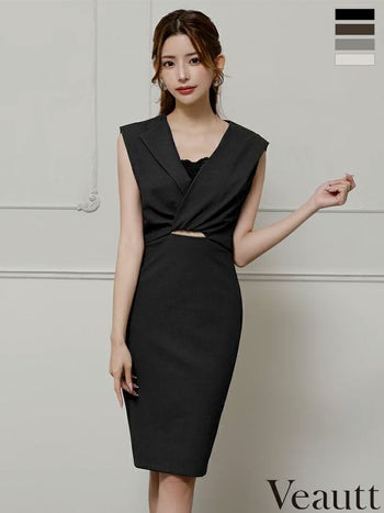 キャバドレス Veautt ヴュート バックオープン ノースリーブ レースインナー付き ウエストカット セクシー タイト 膝丈ドレス