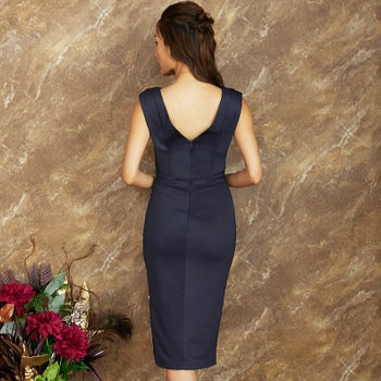 4. 【Veautt/ヴュート】ショルダースリットファスナービジューノースリーブひざ丈ドレス (VT14238)