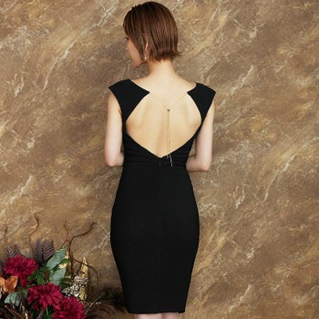 SEXYなバックスタイル♪ SALE【Veautt/ヴュート】アシンメトリーカッティングデコルテチェーンノースリーブひざ丈ドレス (VT16238)