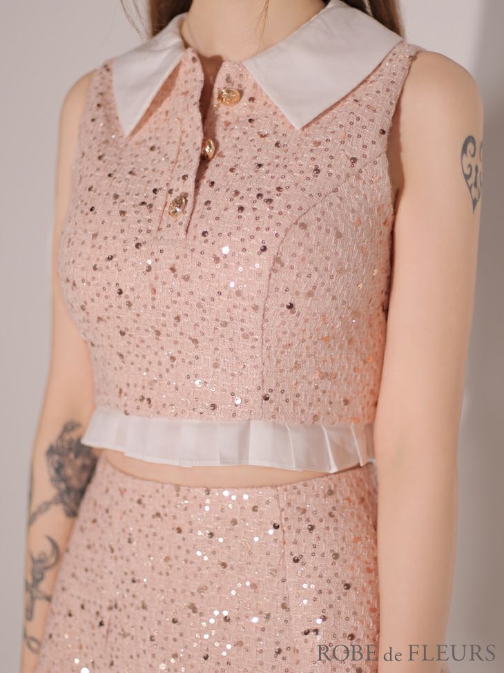 他の画像を見る XSあり!細見え効果抜群♪ 【ROBEdeFLEURS/ローブドフルール】ノースリーブ セットアップ スパンコール ツイード プリーツ ガーリー 襟つき フレアミニドレス (fm3348) ¥ 29,480 税込 詳細を見る お気に入りに登録する