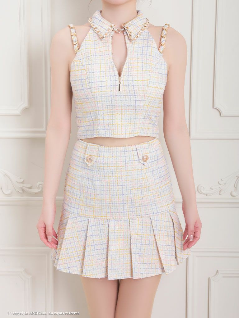 他の画像を見る XSあり!Aラインプリーツで美脚効果抜群! 【an/アン】セットアップ 襟付き ツイード チェック柄 ゴールドチェーンショルダー ノースリーブ プリーツスカート フレアミニドレス(aoc3606) ¥ 29,700 税込 在庫切れ 詳細を見る お気に入りに登録する