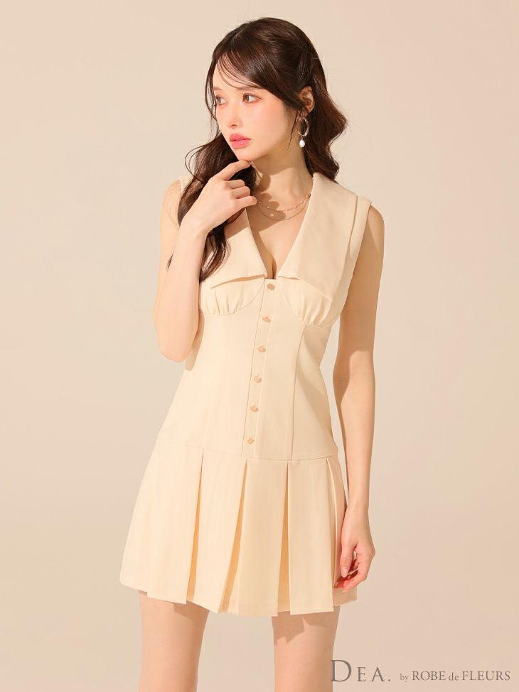 他の画像を見る Lあり!メリハリでスタイルアップ☆ 【DEA.by ROBE de FLEURS/ディア】シンプル ビッグカラー プリーツスカート ノースリーブ フレアミニドレス (DE3395) ¥ 27,280 税込 詳細を見る お気に入りに登録する