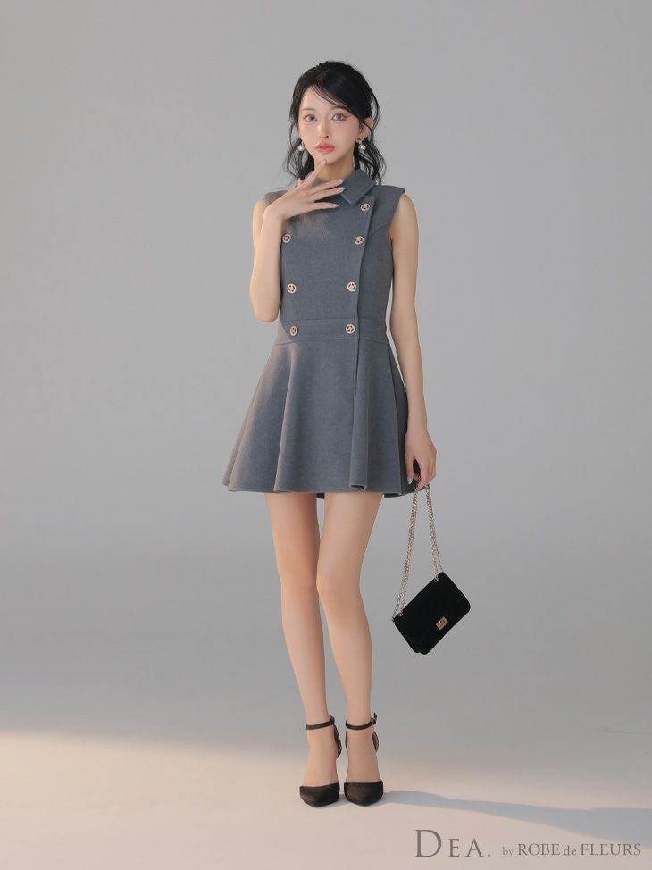 他の画像を見る XSあり!クラシカルガーリーな一着♪ 【DEA.by ROBE de FLEURS/ディア】ダブルボタン メルトン 襟付き シンプル ノースリーブ プリーツ フレアミニドレス (DE3365) ¥ 28,380 税込 詳細を見る お気に入りに登録する